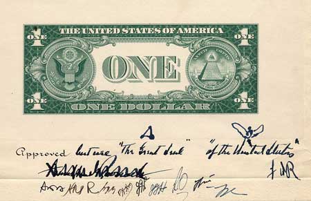 Image 5 - Final draft and approval for the US Dollar's redesign which added the Great Seal in 1935. This design is signed by FDR with his desired changes. He wanted the pyramid symbol changed to the left side. ----------------------------------------------------------------------------------------------------------------