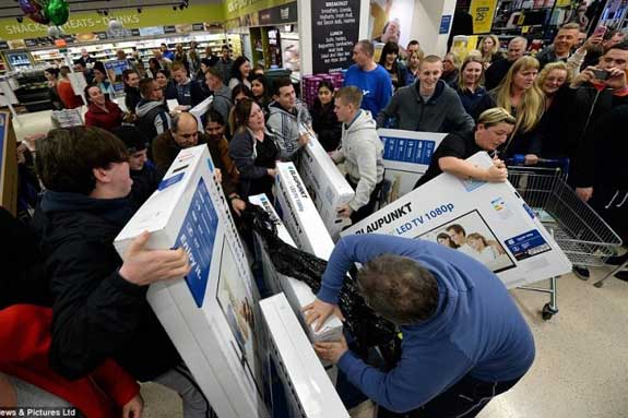 How did the merchants become rich? Many ways. But one recent way is through the exportation of Black Friday to the world. This year in 2014 Black Friday is invading Europe. It is an embarrassment. America's export to the earth is a culture of Greed. Black Friday Madness 2014! - By David Sim